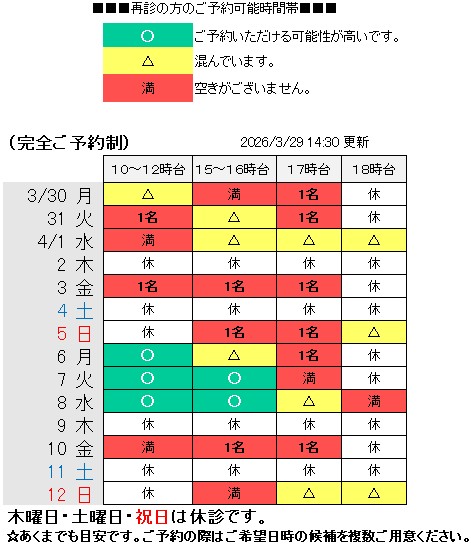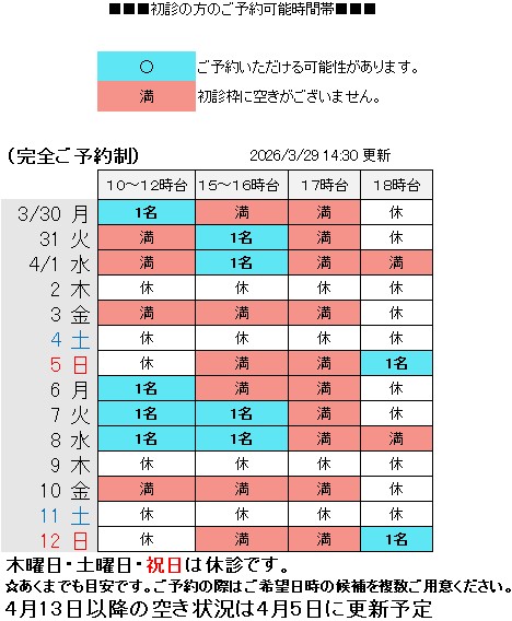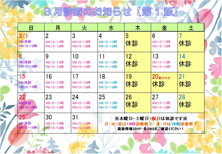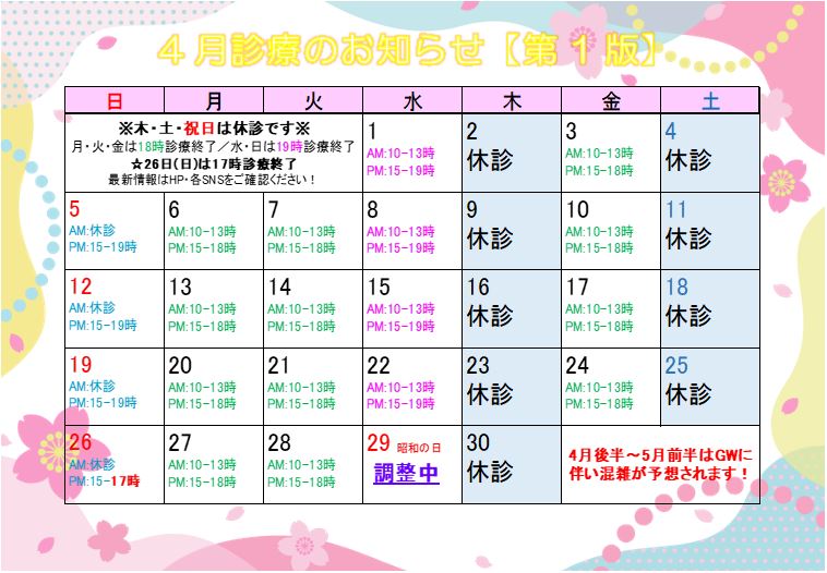 ●4月29日(水)は祝日のため休診とさせていただきます。